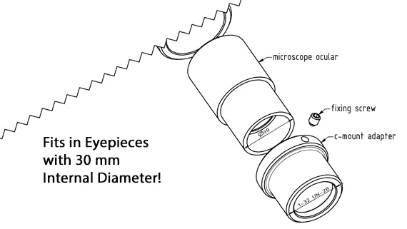 The camera is inserted directly into the microscope (replacing the eyepiece) and displays on-screen the image a viewer otherwise sees when looking through the eyepiece. With stereo microscopes, stereo images (i.e. depth images) can be easily generated with two eyepiece cameras.