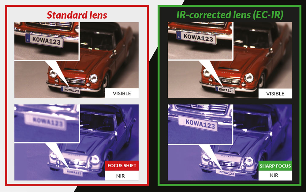 The EC-IR series is equipped with high transmission IR-correction, making it ideal for applications like traffic control and number-plate recognition. The IR-correction minimises chromatic aberrations and maintains clear images across visible and infrared spectrums, ensuring high-quality results even in challenging conditions.