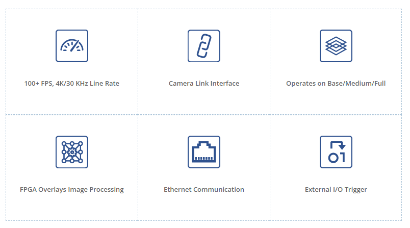 This Xilinx Zynq SoC powered Framegrabber+ can be used for both Area and Line scan applications that require high resolution processing at high speed. This production ready compute box handles high speed image capture using our proprietary CameraLink IP and image processing using our proprietary FPGA overlays easily accessible using a simple python API call.