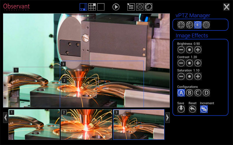 - Multiple virtual 2D Pan, Tilt & Zoom (vPTZ) views of the workspace and devices
