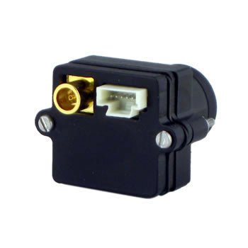 Five to twelve volt DC power and I2C control signals for the camera are sent over a twisted pair cable to the camera via a rear Molex connector.