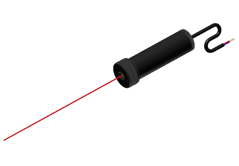 The LDM-2 laser module measures 16mm diam x 56mm long. The laser diode module comes with Allen keys allowing for the x-y adjustment to be carried out. Once in position, the LDM-2 laser module holds its zero very well, even in environments where high shock exists. The laser diode module can come with either red/blue flying leads or with a 2 core LDM cable. The unit can also be operated off a battery pack containing 2 AA batteries.